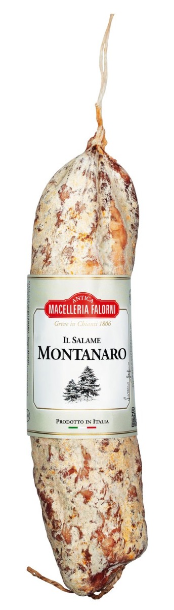 Aus Schinkenfleisch, sehr mager, mit Pfeffer und einem Schuss Chianti gewürzt. Zwei Monate im Naturdarm gereift, umgeben mit Edelschimmel. Von einem unverwechselbaren Geschmack und Aroma. Feine Körnung. Eine typisch toskanische Wurst.