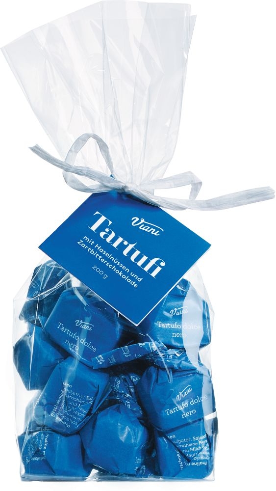 Die dunkle Variante der Urform unseres Tartufo wird mit viel Kakaomasse hergestellt. Der klassische Trüffel zum Caffè. 14 Stück im durchsichtigen Geschenkbeutel.