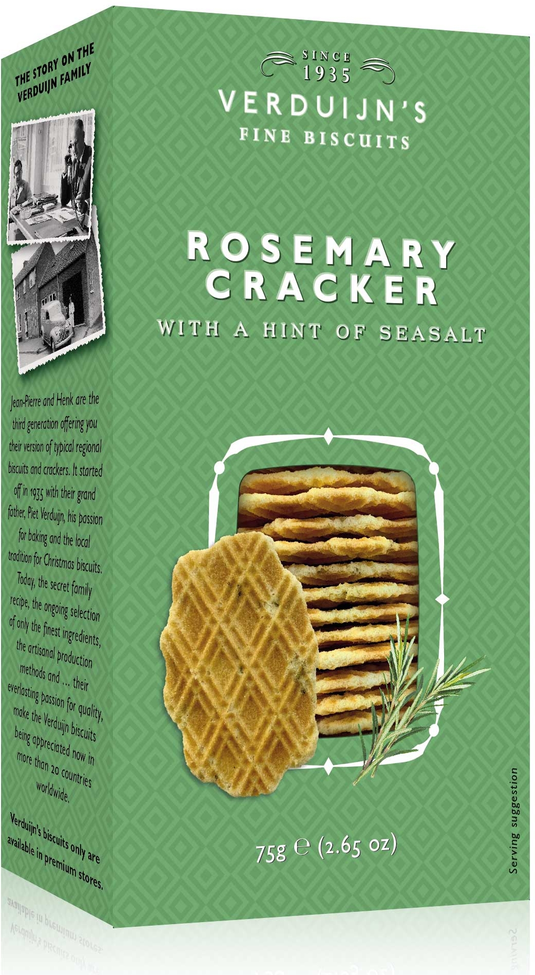 Zutaten: WEIZENmehl (GLUTEN), pflanzliche Margarine (Palmfett, Wasser, Emulgator: Mono, und dygliceriden von Fettsäuren, Säuerungsmittel: Citronensäure), Maltodextrin (aus Mais), Meersalz 1,9%, MILCHpulver, Backtriebmittel: Natriumbicarbot, Ammoniumbicarbonat, EIpulver, Rosmarin 0,8%, SOJAmehl, Pfeffer. Kann Spuren von Nüssen, Erdnüssen, Senf und Sesamsamen enthalten.
